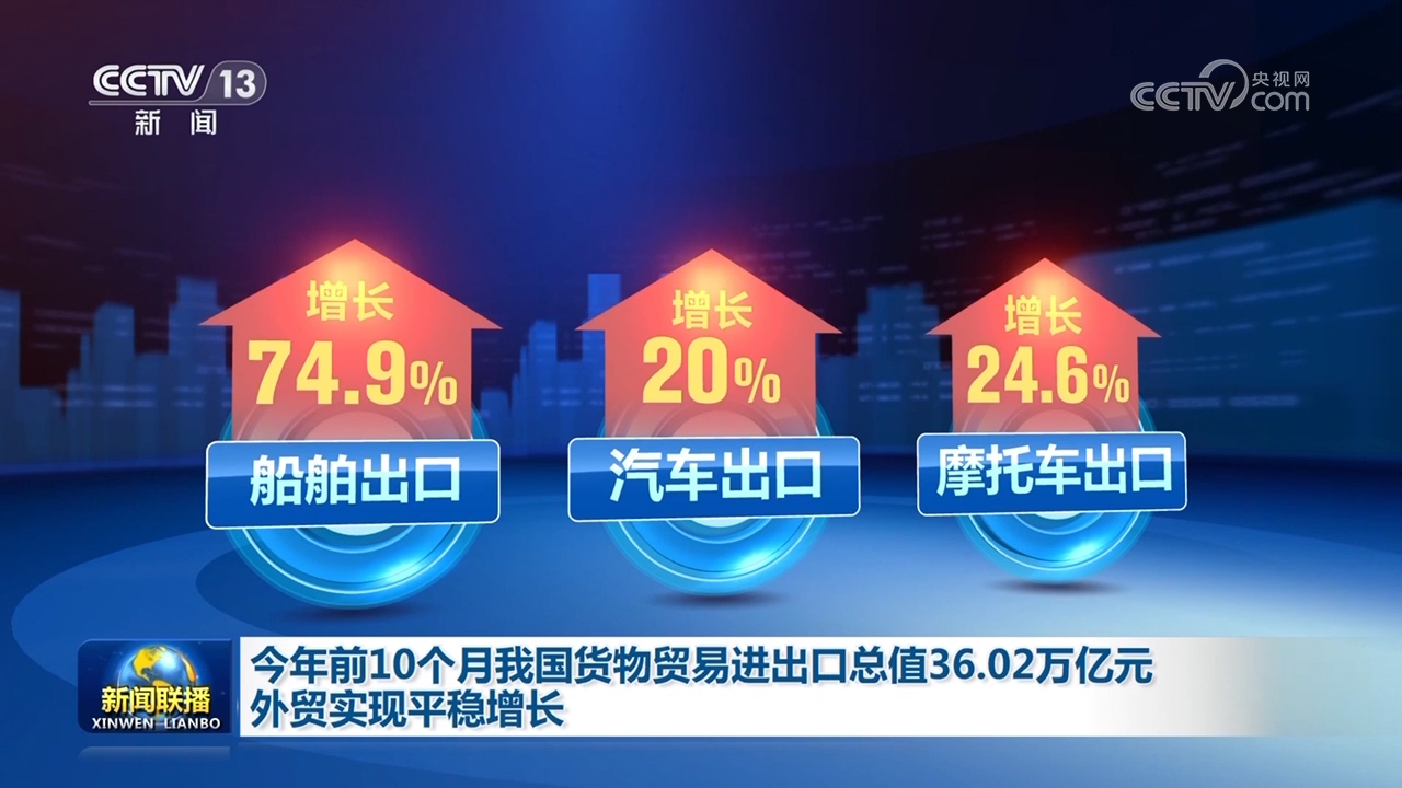 ():海关总署11月7日对外发布,本年前10个月,外贸实现平稳增加。